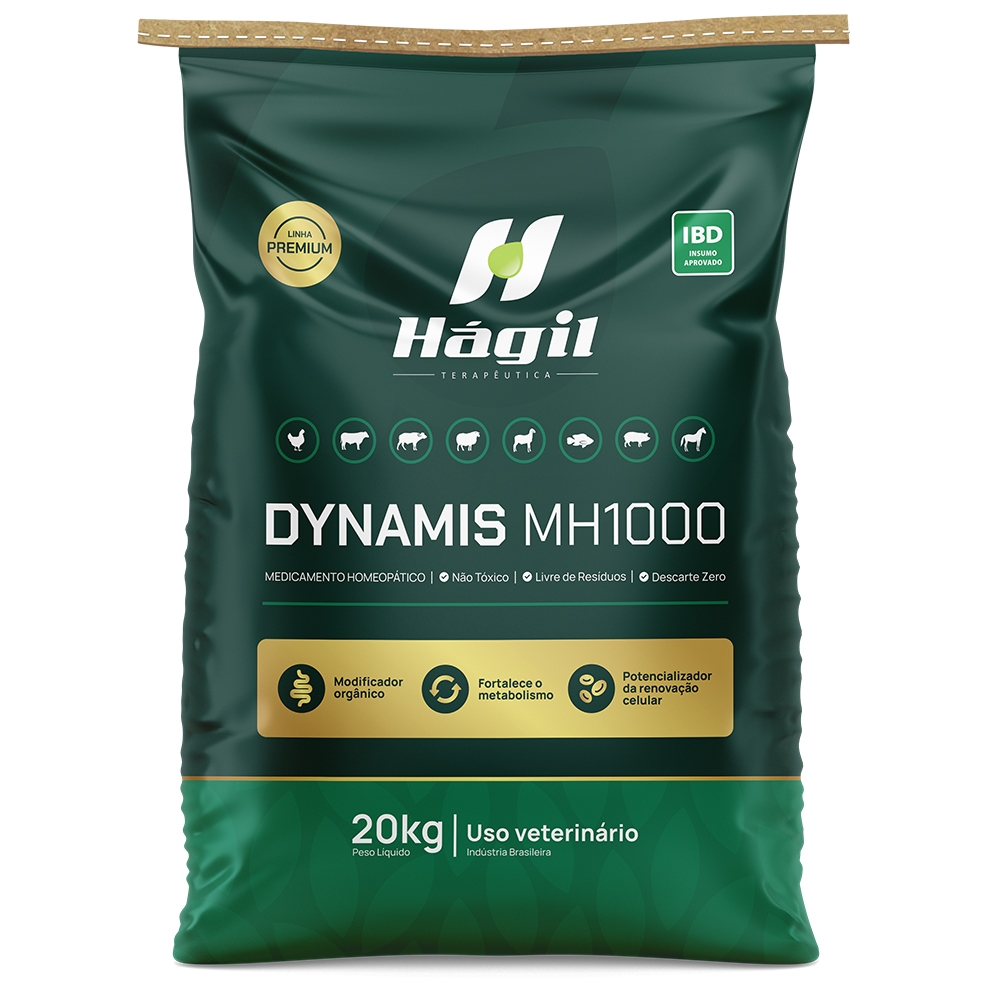O Dynamis MH1000 tem como veículo o Lithothamnium, farinha de algas rica em cálcio, ferro, magnésio e iodo, importante fonte de minerais bioativos, mas que não se dissolve na água. Produto para ser acrescentado na formulação de rações.