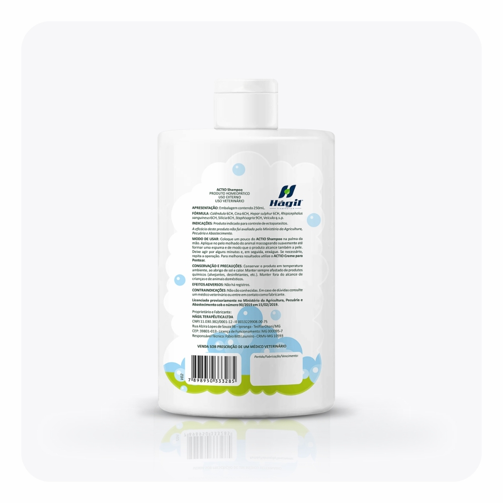 Recomenda-se o uso em sinergia com os produtos ACTIO gotas para o controle dos parasitas externos.