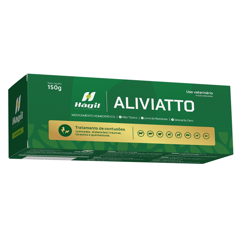 Aliviatto é um gel homeopático de uso tópico, indicado para traumas físicos como contusões, torções, queimaduras, assaduras, cortes e luxações. Alivia a dor, acelera a recuperação dos tecidos envolvidos e promove rápida cicatrização. Excelente para uso em massagens nas contusões e esfoladuras ou lesões geradas por brigas, atropelamentos e quedas. Recomendado para o uso pós-cirúrgico em cirurgias mais ou menos invasivas.