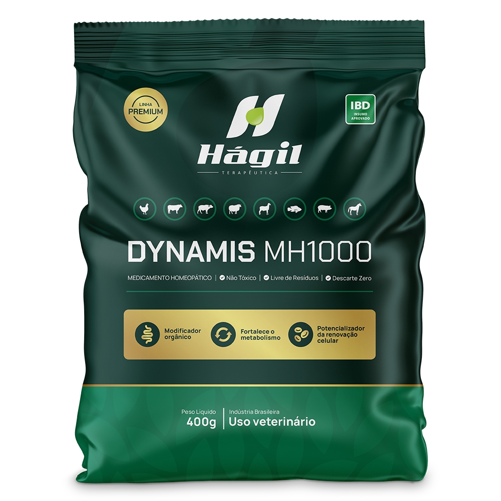 O Dynamis MH1000 é um modificador orgânico e modulador das respostas imunológicas. É um medicamento que desempenha no organismo animal uma reestruturação do metabolismo e organiza sua atividade fisiológica, melhorando o seu desempenho frente aos desafios ambientais, nutricionais e de manejo.
